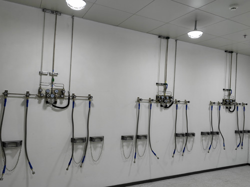 1.氣瓶間內學習壓力改善開關按鈕與試驗室內外的氣路數據終端左右所采用SS316LBA管完成銜接,線路內表明光澤度為Ra<0.4umBA級線路。